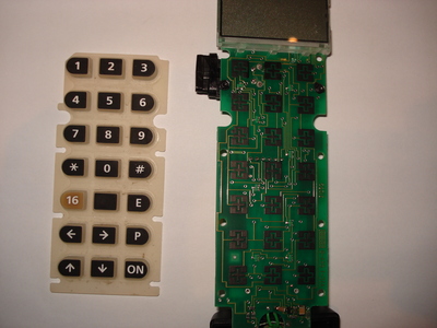 Op deze foto wordt het verband van de druktoetsen en de contactpunten aangetoond zodat duidelijk is welk toets welk contact bediend.
