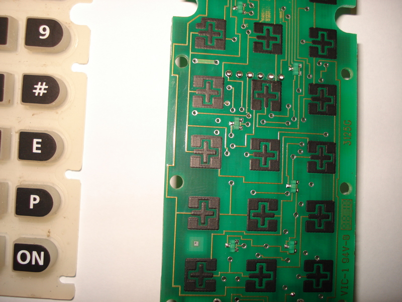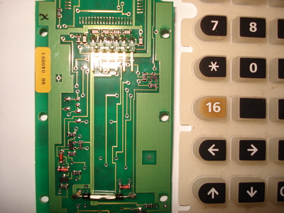 Hier een close up van de printbanen van de contactpunten , de falende rij (buiten dan de squelch) is de linkse rij op de foto.