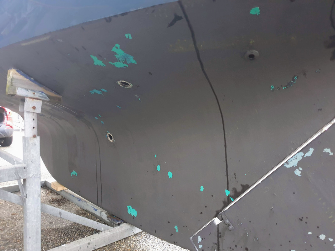 Onderwater is er weinig mis zo te zien en het roer heeft maar weinig speling op de vingerlingen en scharnieren . Daar zitten nu geen verzonken bouten in, dus waarschijnlijk is er al ooit iets vervangen.