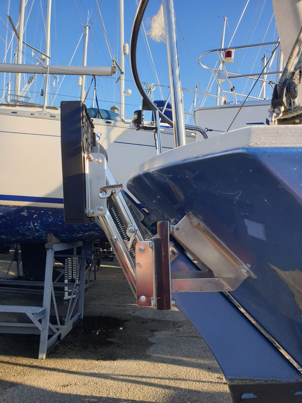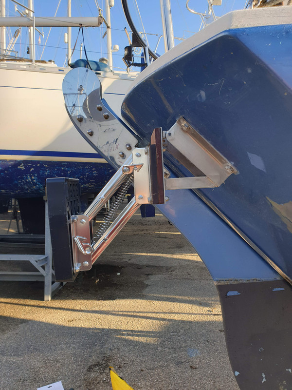 Met zo'n klapsteun kan de schroef serieus diep onder water, maar is opgeklapt volledig boven water.....lekker KISS