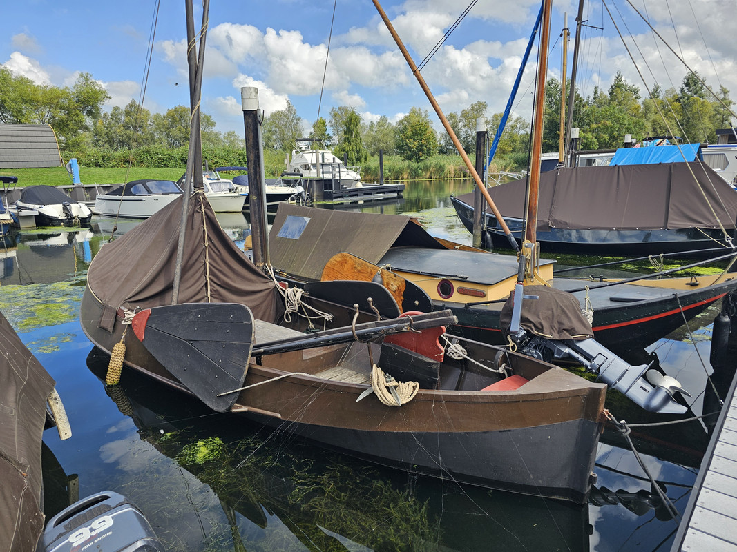 Het is een gelaste replica van een originele 7mtr Zalmdrijver of Drijverschuit zoals ze ook wel heten en de vorige eigenaren hebben er alles aan gedaan hem zo origineel mogelijk te houden, behalve dan die stevige BBM eraan.