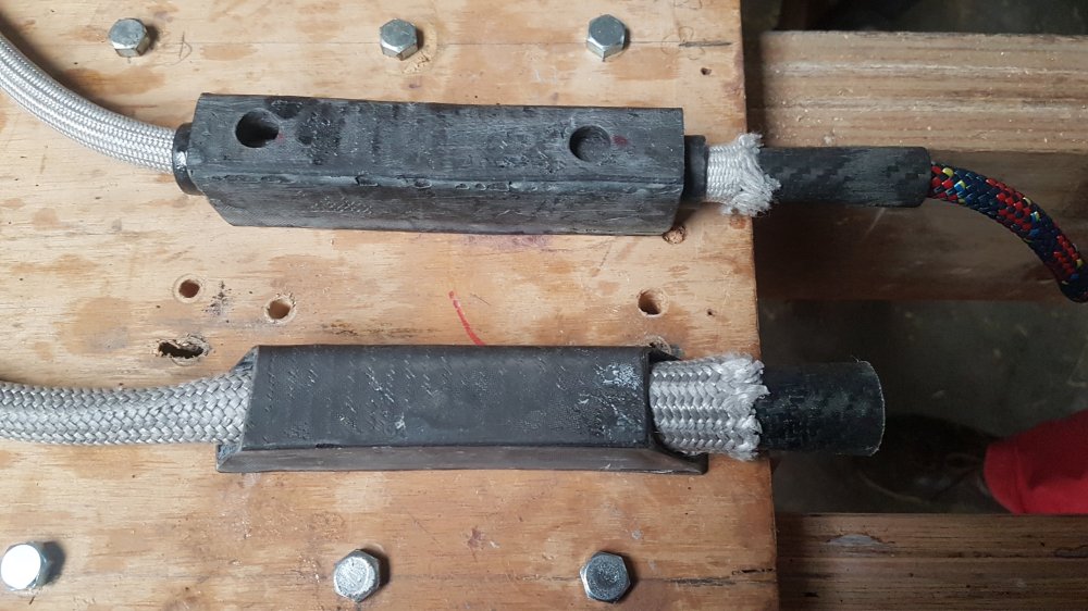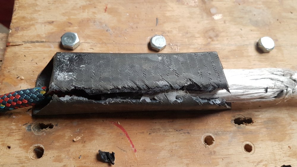 de Dyneema tieren snijden als een mes door het carbon, alweer ergens tussen 1200 en 1500 kg. Nog ff doortrekken en …