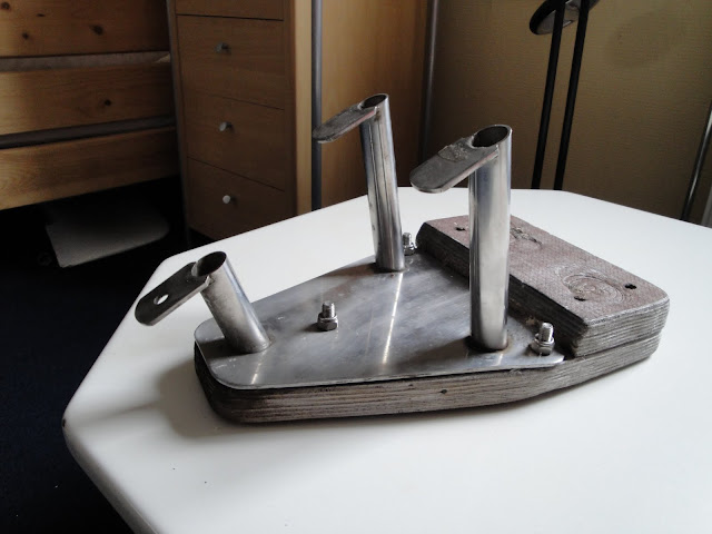 Van de gevormde plaat aan de buitenzijde naar de rechte plaat voor de motorsteun kan je ook gebruik maken van RVS buizen die je ertussen last. Met een beetje spelen krijgen je dan een mooie rechte constructie die rotvrij is.
