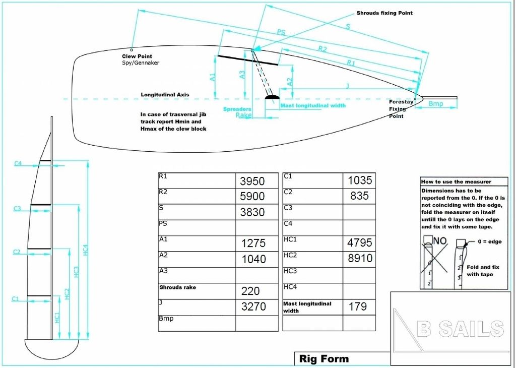 - 1ste rif: 26.6 m2 (kan net onder achterstag door; oppervlak vergelijkbaar met huidig grootzeil)