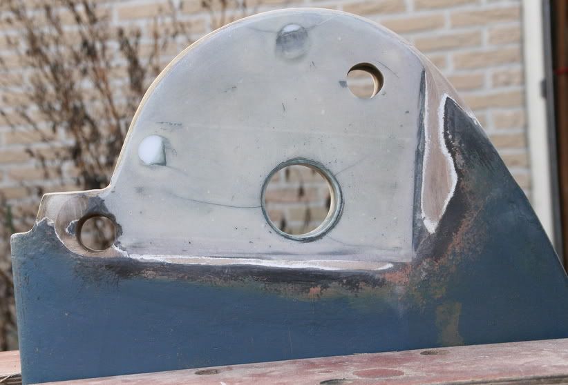 De alu glijplaten kan je maken van 600 gr weefsel in epoxy. Dat doek kan je van boven naar beneden door laten lopen voor extra stevigheid. Zie hieronder: roer draait zonder extra versteviging.