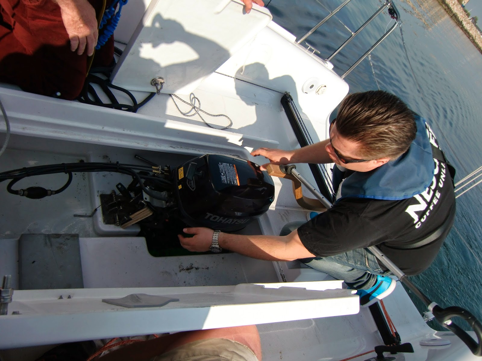 Onderwerp: Zeilboot met buitenboordmotor in bun