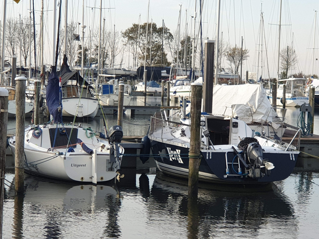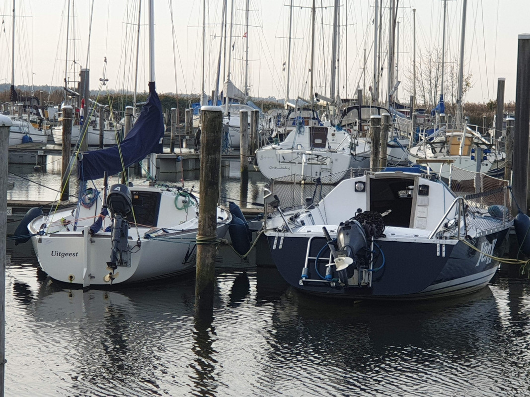 Ik heb hem verkocht omdat ik er singlehanded wel erg veel werk aan had, het stuurt en reageert ook als een dinghy dus ff roer los of overloop vast in vlagen kan niet en dat is lastig op krap vaarwater tussen beroepsvaart.....en 65plus helpt ook niet