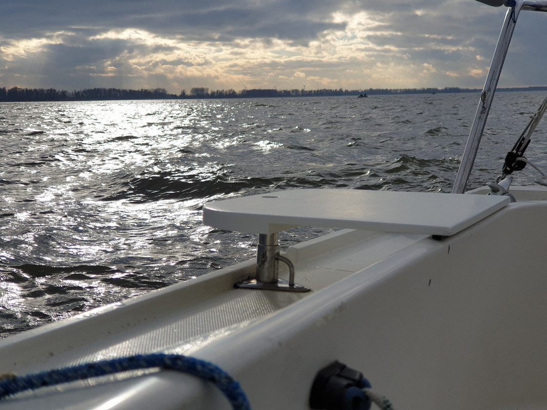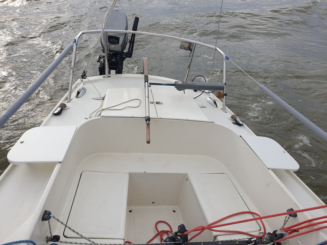 Een ankerrol op de boeg is niet standaard, maar wel handig. Ik heb een 10kg anker met loodlijn en deze ophalen zonder schade of rugpijn gaat nu stukken beter.