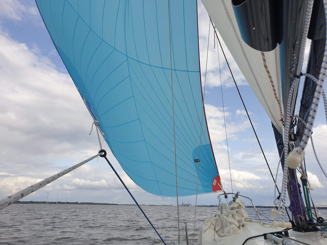 Voor de wind vind ik het niks zonder boom en dan zet ik net zo lief de spinakker.