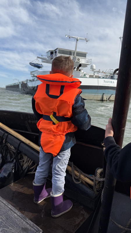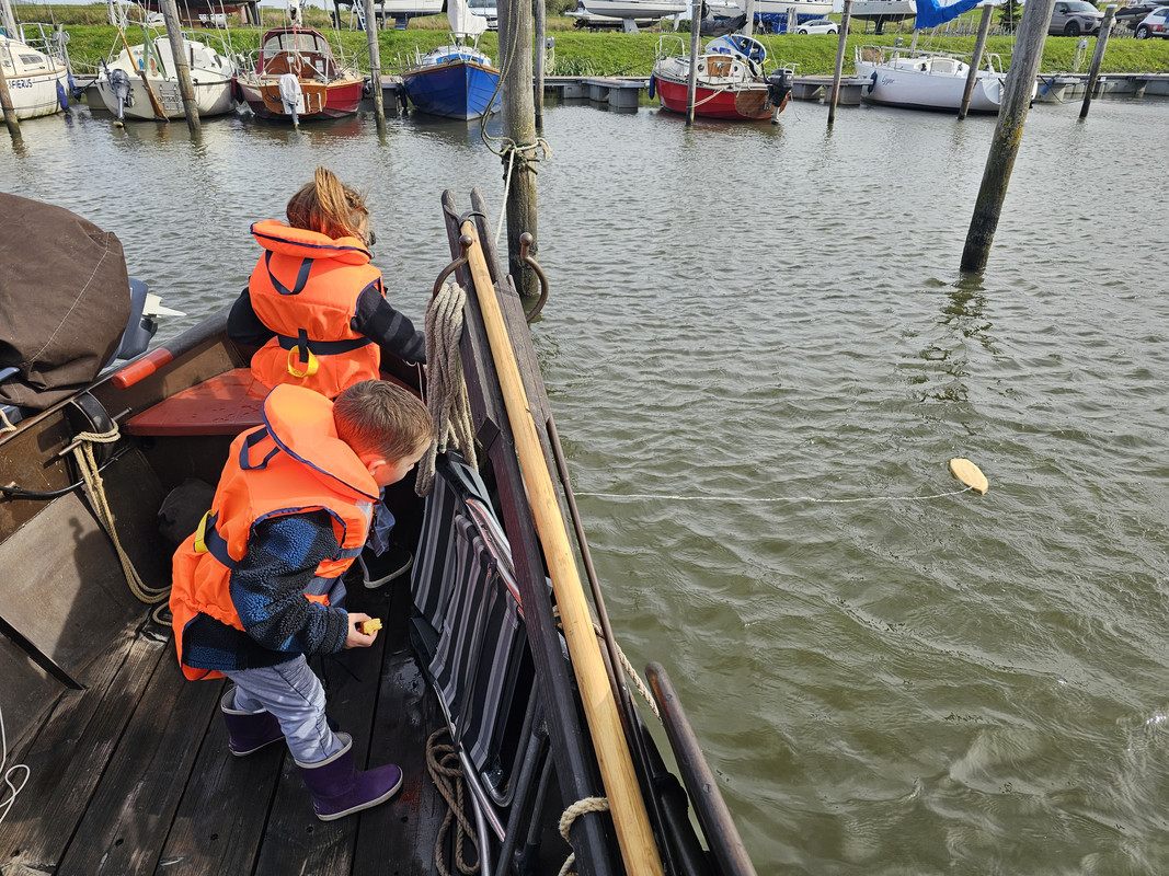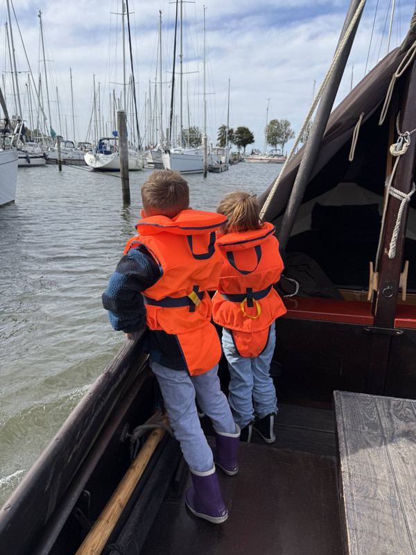 Zwemvestjes aan dus en vol spanning en enthousiastme de haven uit.