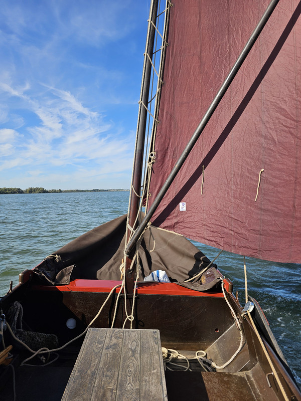 Heel veel zal ik er niet mee varen. Ik mis nu toch wel een beetje de mogelijkheid om ff een zeiltje bij te zetten, omdat de mast en spriet van boord zijn voor onderhoud.