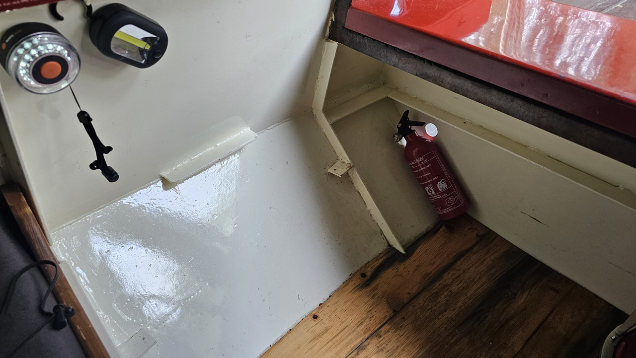 Ook heerlijk is dat ik niet voor de zoveelste keer een stroomnet aan boord van mijn zoveelste "nieuwe boot" hoef te renoveren ......er is helemaal geen accu aan boord en de enige "walstroom" is een verlengkabel op mijn 230V kelder/dompel pomp die de boot droog houdt als het veel heeft geregend.