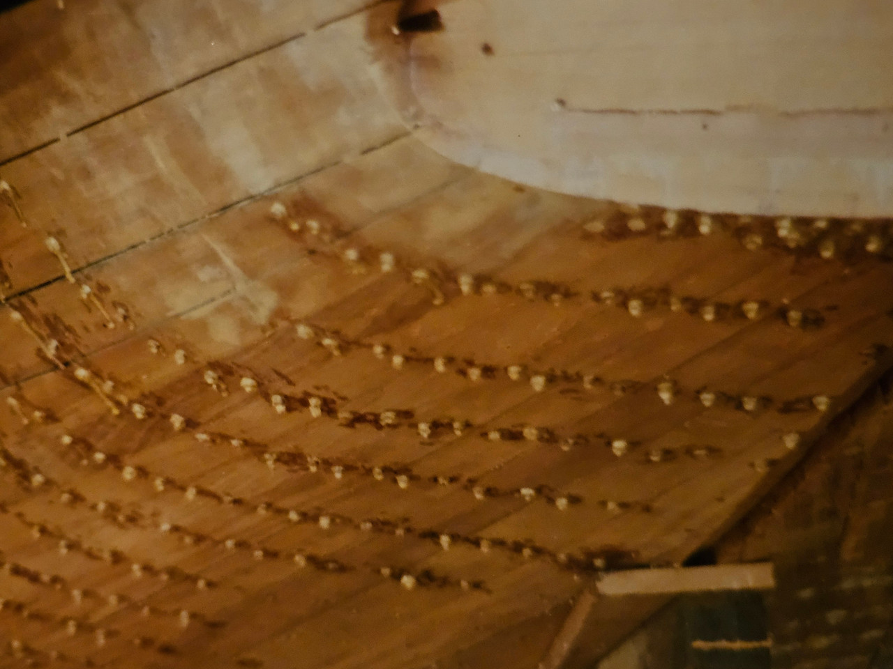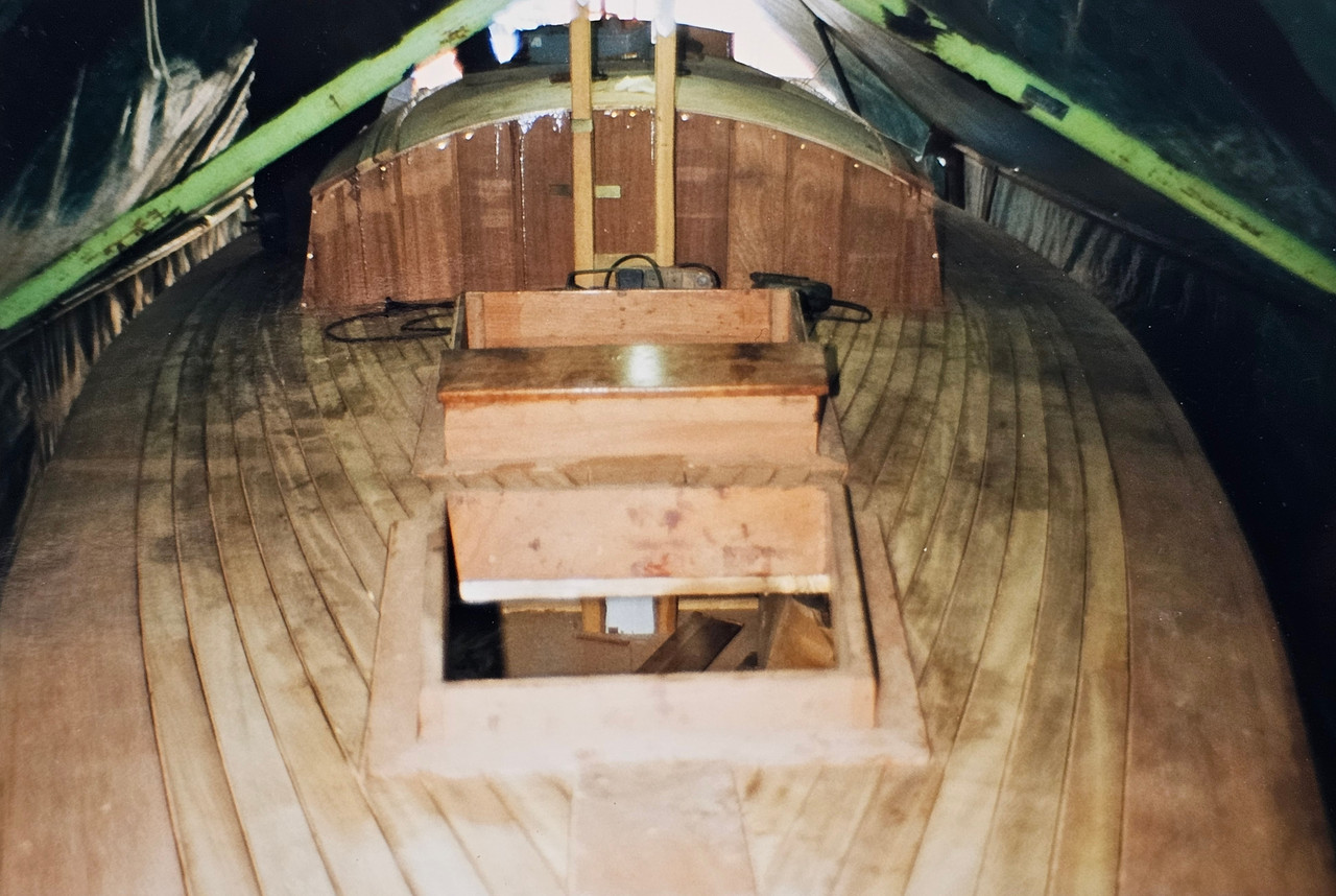 Het dekpatroon klopte, dus het kon. Ik moest dan wel de teaklatten losschroeven, ergens door een vandiktebank halen en er zaten overal schroefgaten in.....en dat op een vrijwel nieuw herbouwde boot ???