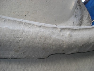 Dit zijn enkele foto's van de binnenkant van een buiten bergruimte , met name de onderzijde van één van de cockpit zitbanken. Ook de rest van de binnenboot (uiteraard niet leefruimte) is gedaan met deze verf
