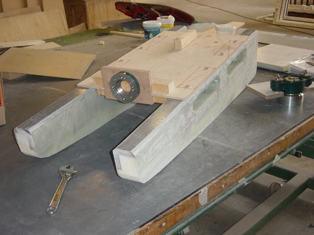 In een paar berichten terug laat de laatste foto de ingelamineerde motorfundatie zien van bovenaf. Tot dat stadium was er nog geen kuip en waar je bovenop kijkt is het begin van de kuipzittingen. Voor het plaatsen van de motor is het nog veel te vroeg en de kuip moet wel worden afgebouwd.