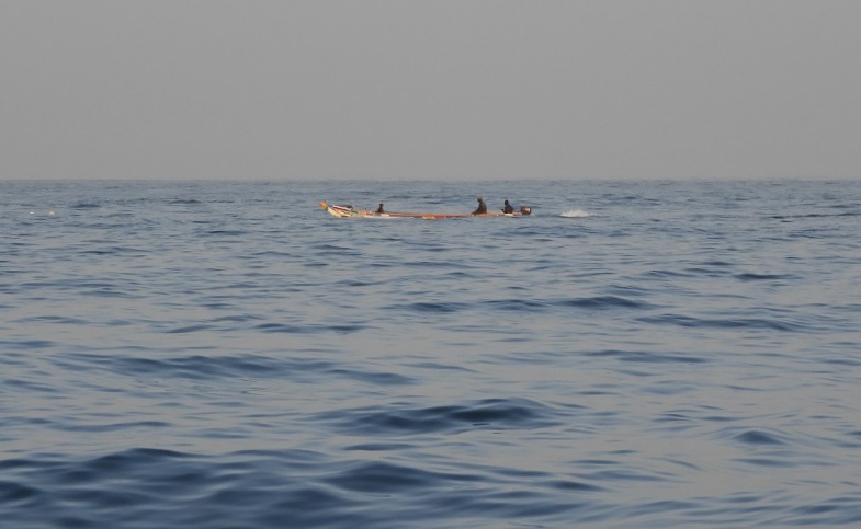 De vissers daar varen met zogeheten piroques. Met een beetje zeegang zie die dus heel slecht.
