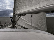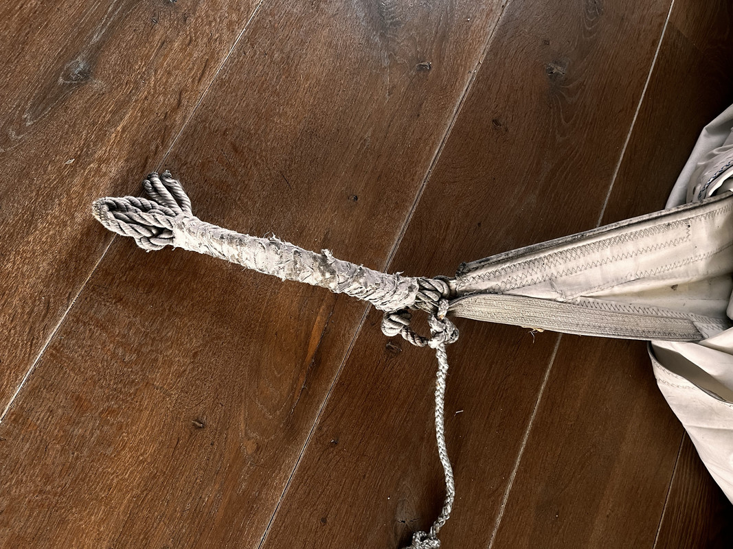 Valt me wel op dat er aan de bovenkant van het voorzeil een aardig lange lus zit. Zeker 20cm. Dat zou wellicht het verschil kunnen maken...?