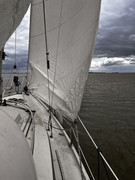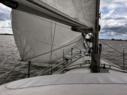 Dan t grootzeil: het lijntje bij de schoothoek is bedoeld voor het regelen van de onderlijkspanning. Dat is voor een grootzeil een behoorlijk belangrijke trim mogelijkheid.